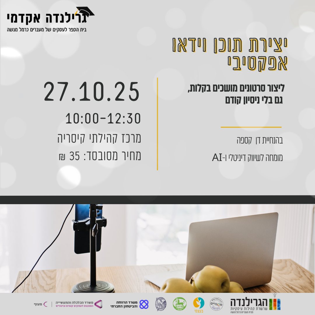 גרילנדה אקדמי- יצירת תוכן וידאו אפקטיבי בהנחיית דן קספה