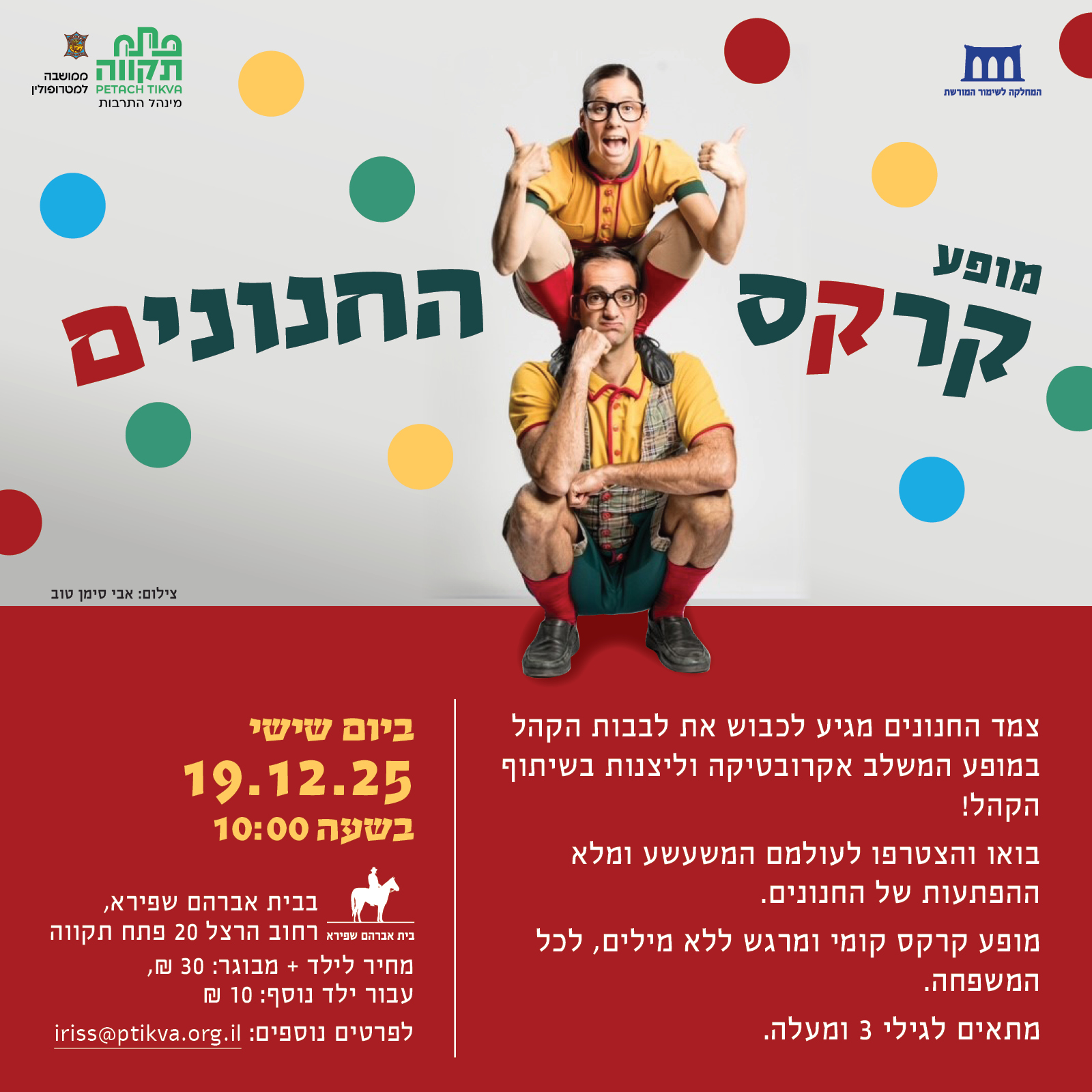 | הורה + ילד | 30 ₪ |