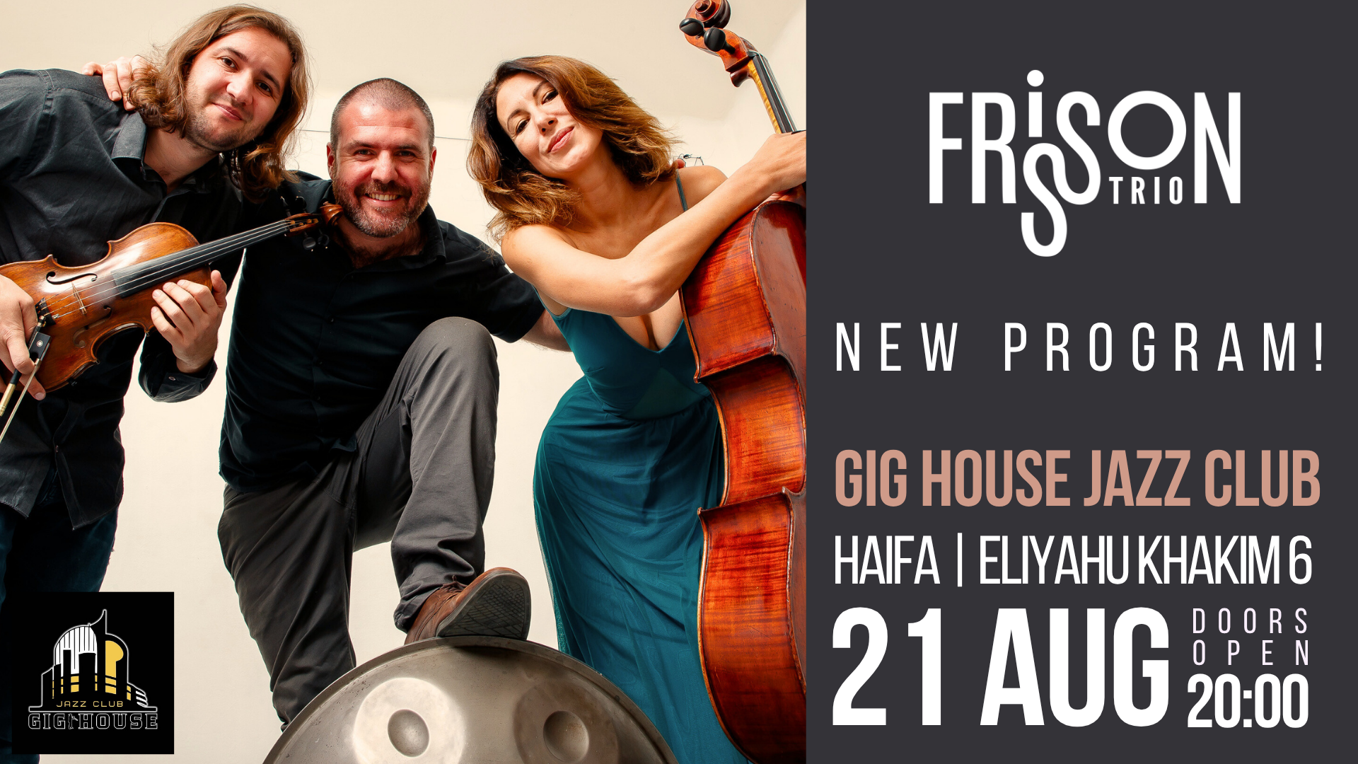 Frisson Trio — это смелый и уникальный инструментальный ансамбль из Израиля, объединяющий редкое сочетание хангдрама (пантама), скрипки и виолончели — сочетание инструментов, не имеющее аналогов в мире.Музыка трио отличается эклектичностью и широкой эмоциональной палитрой — от тонких, тихих моментов до мощных, энергичных пиков.