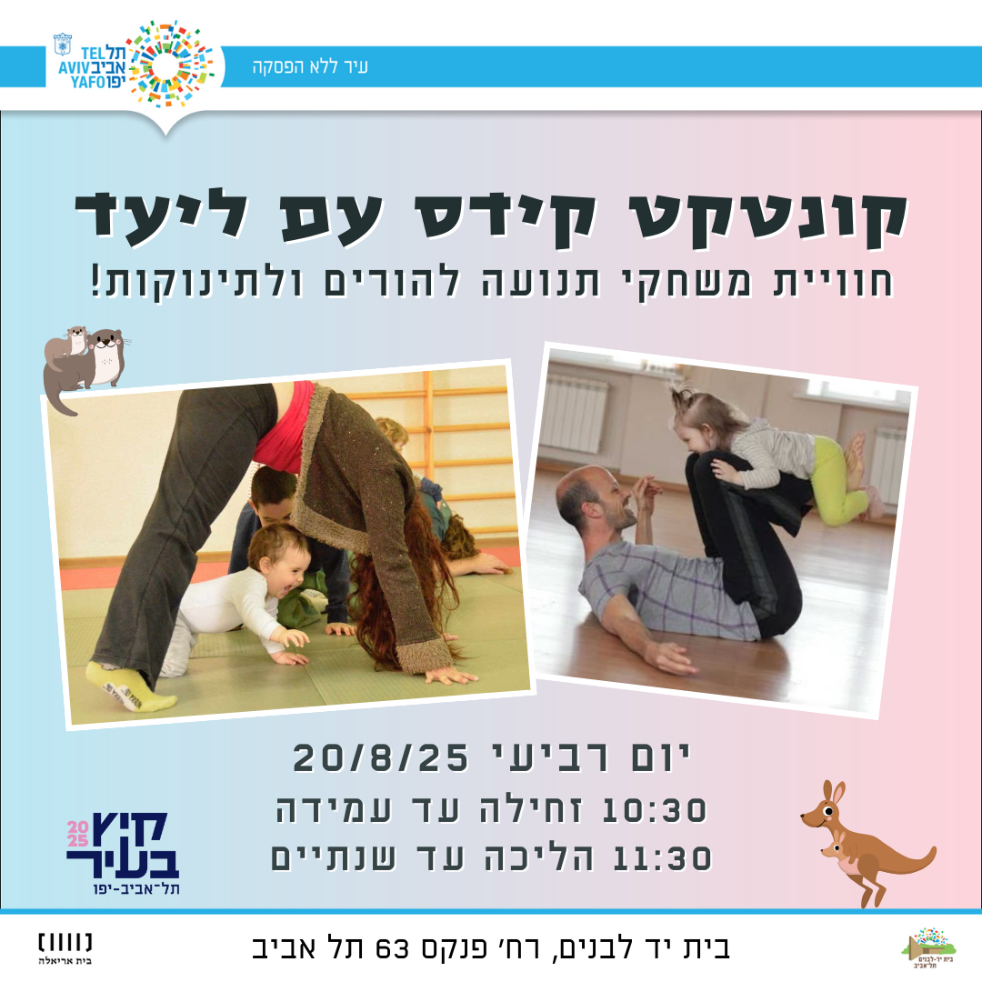 בהדרכת ליעד פז - אימא לשניים, מורה מוסמכת לשיטת ContaKids, מדריכת תנועה לגיל הרך, עיסוי תינוקות וליווי התפתחותי בתנועה מטעם וינגייט.