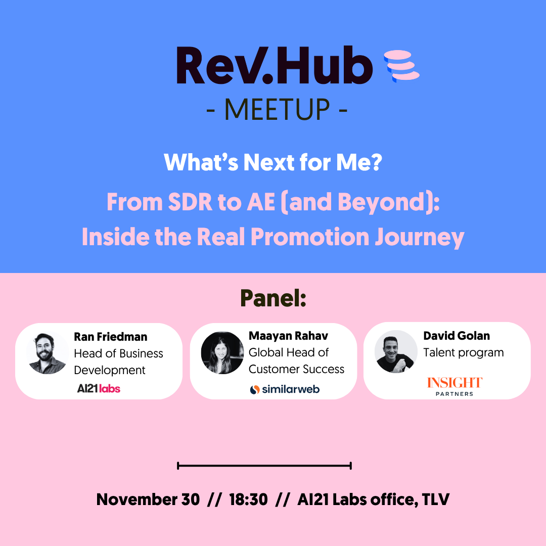 This meetup is all about helping SDRs and BDRs understand what’s next — how to grow from your current role, identify the right path for you, and prepare for that next big step in your career.