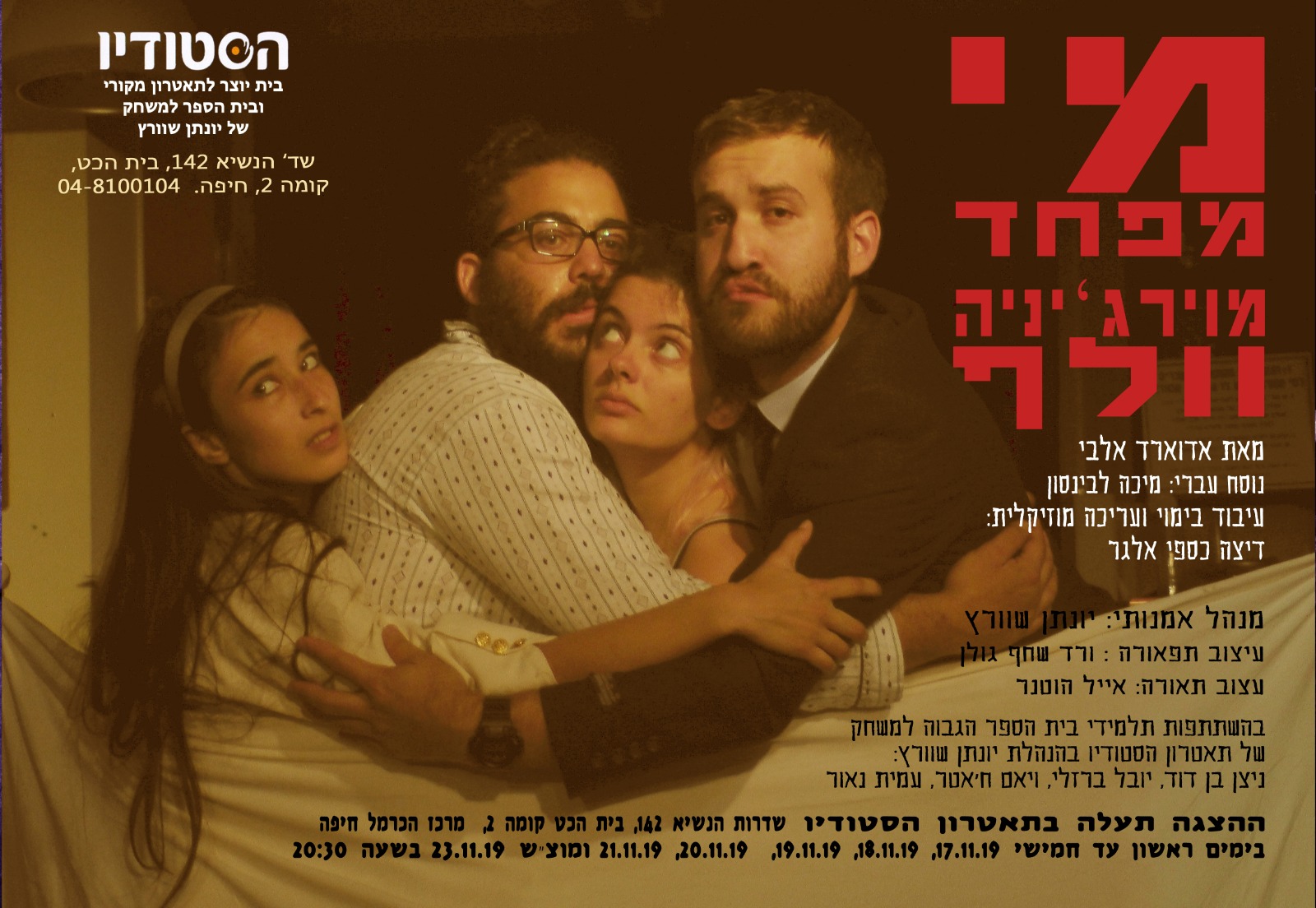 ראשון עד מוצ"ש (לא כולל שישי), 17-23.11, 20:30 – תיאטרון הסטודיו מציג: "מי מפחד מוירג'יניה וולף?"